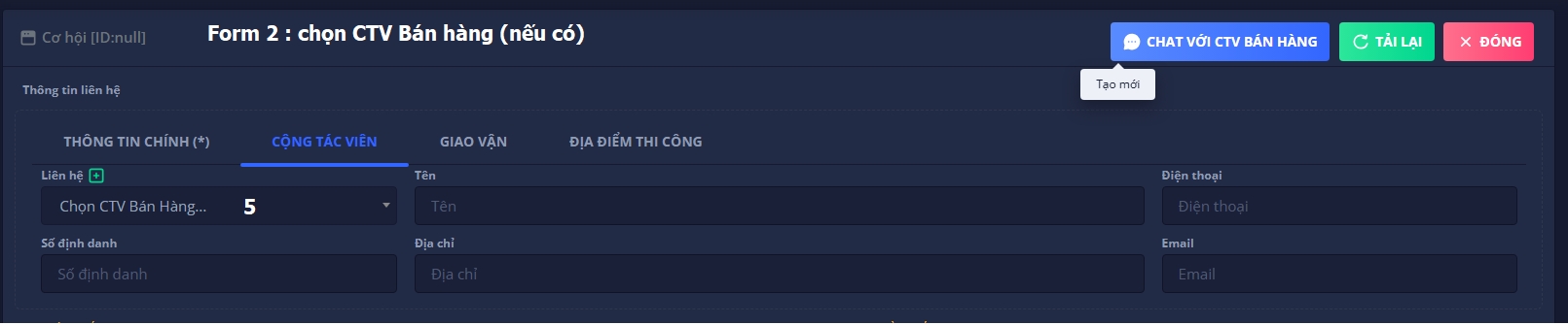 Liên hệ (Bắt buộc nếu có CTV): Chọn cộng tác viên (CTV) tham gia vào cơ hội bán hàng.