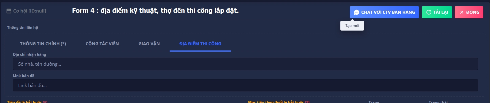Lưu ý: Form này áp dụng cho các cơ hội có yêu cầu thi công lắp đặt.