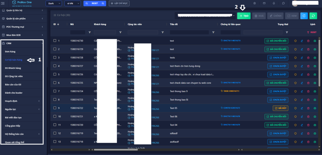 1. Truy cập vào danh mục Cơ hội bán hàng