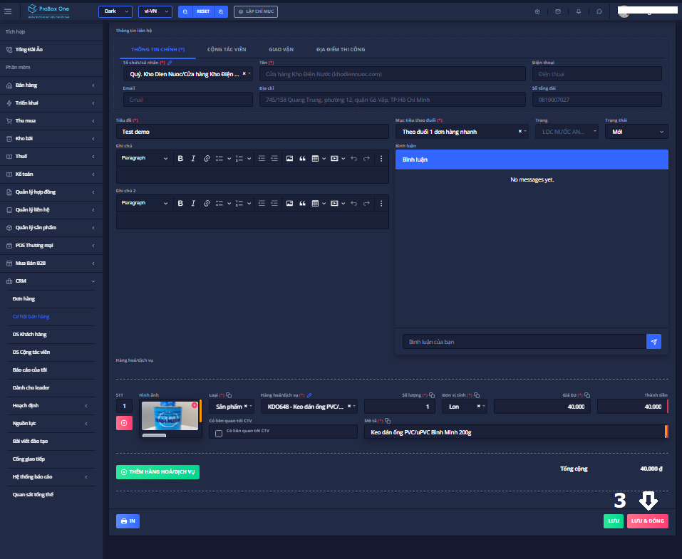 Bước 2: Nhập thông tin cơ hội bán hàng